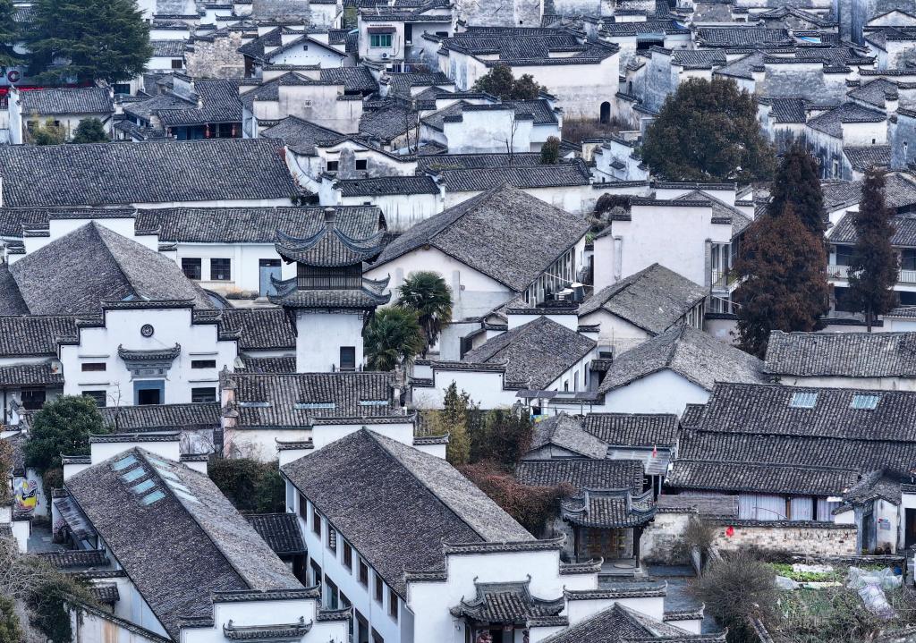 黄山市黟县西递村(1月26日摄,无人机照片)。