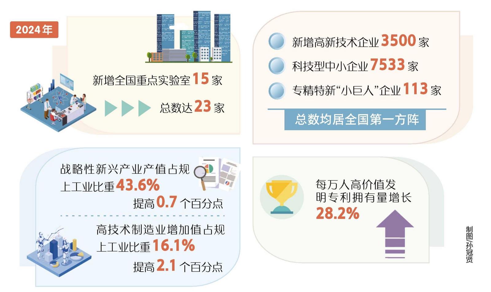 三大科创引领高地建设成效显著,“祖冲之三号”实现超导量子计算最强优越性,聚变能源商业化进程走在世界前列,“天都”双星实现绕月编队飞行;战略性新兴产业产值占规上工业比重43.6%、提高0.7个百分点,高技术制造业增加值占规上工业比重16.1%、提高2.1个百分点。