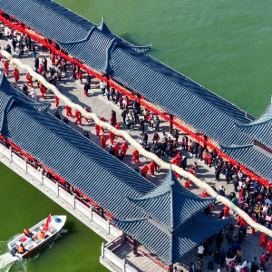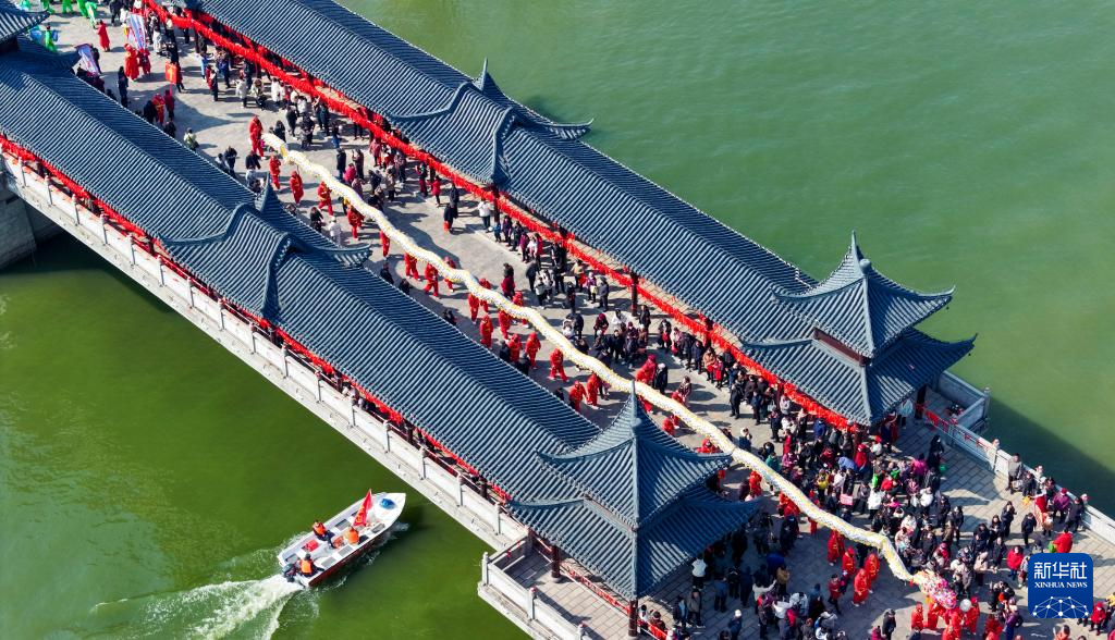当日是农历正月十六,安徽省滁州市全椒县传统民俗活动“走太平”拉开帷幕。巡游队伍穿过太平桥,献上精彩纷呈的民俗表演。
