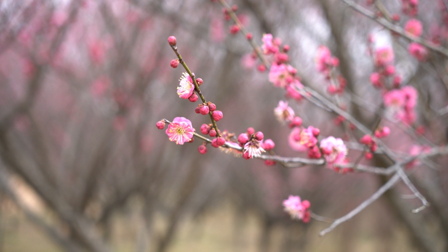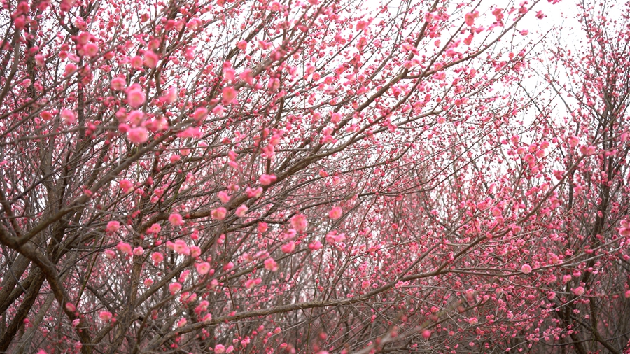 早春时节,安徽省巢湖市庙岗镇的清水湾梅花园内,千亩梅花相继盛开,朵朵梅花缀满枝头,宛如大自然挥毫泼墨绘就的早春画卷,吸引众多游客慕名而来,感受“梅开百花先”的盎然生机。
