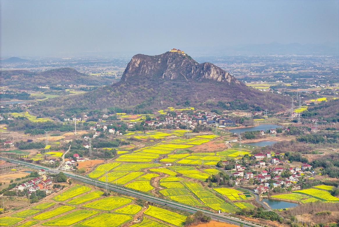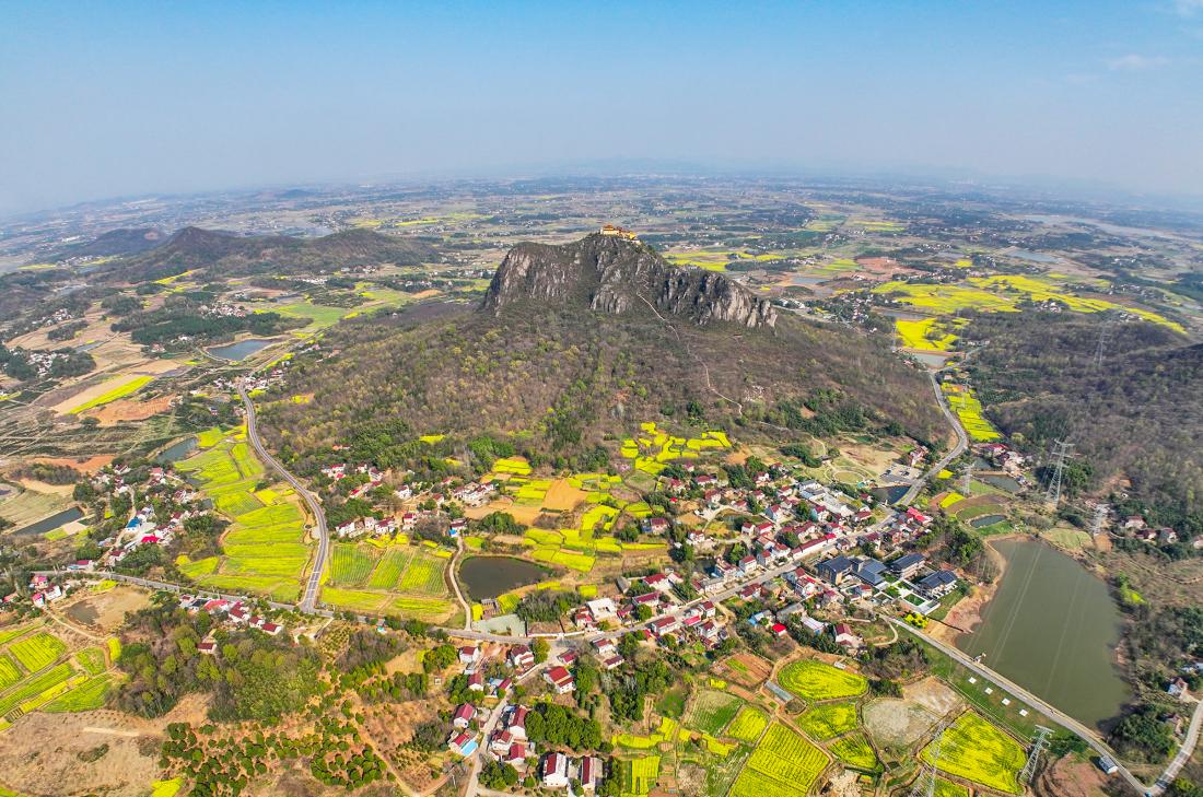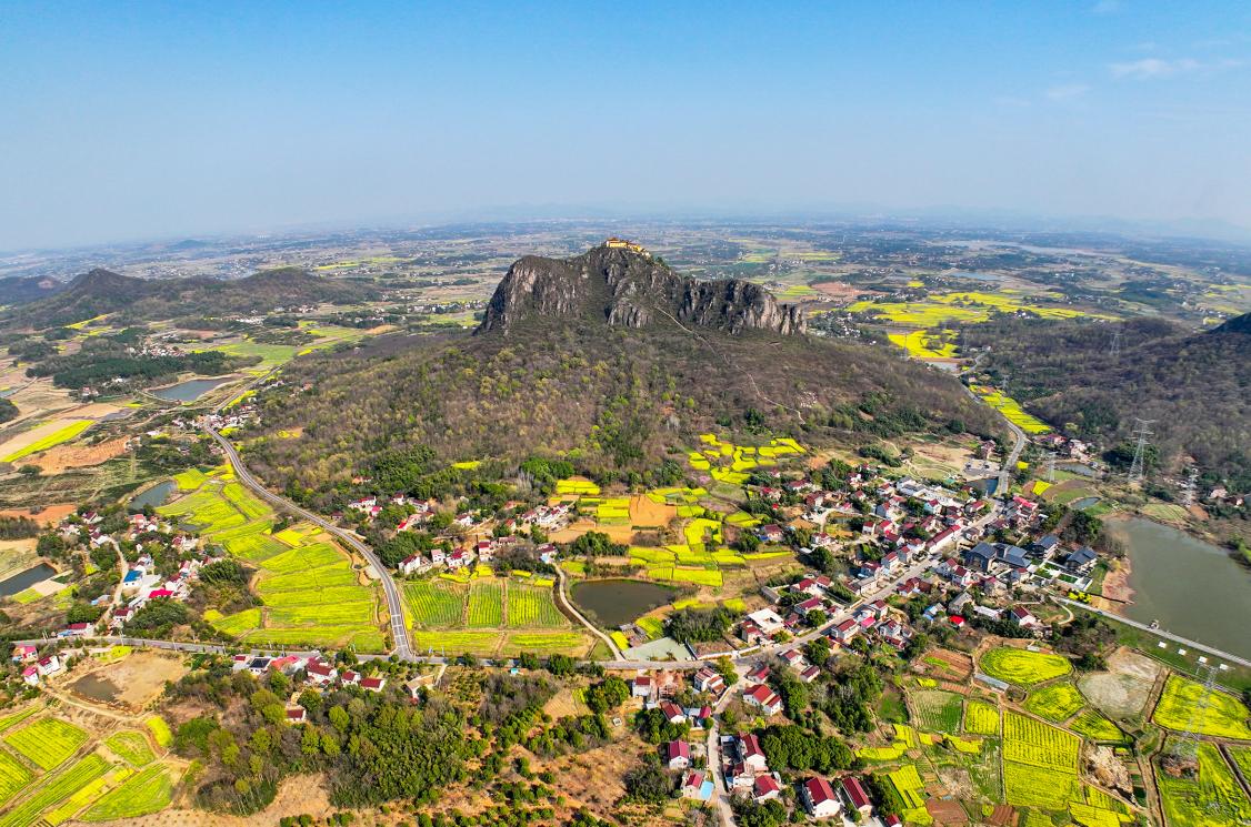 3月22日,安徽省合肥市庐江县乐桥镇岱鳌山下的油菜花竞相绽放,春景如画。