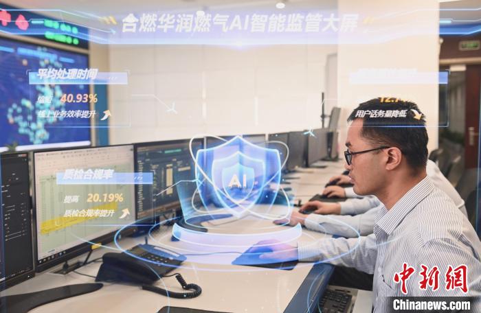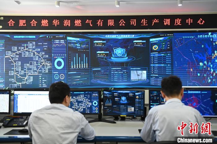 4月15日,在合肥合燃华润燃气有限公司,工作人员正在通过AI智能监管平台对各项业务数据进行质检分析。中新社记者 韩苏原 摄