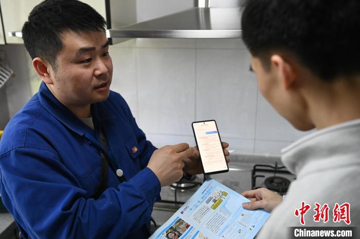 4月15日,燃气检修工作人员借助燃气标准作业流程AI助手,获取智能化作业指导。中新社记者 韩苏原 摄