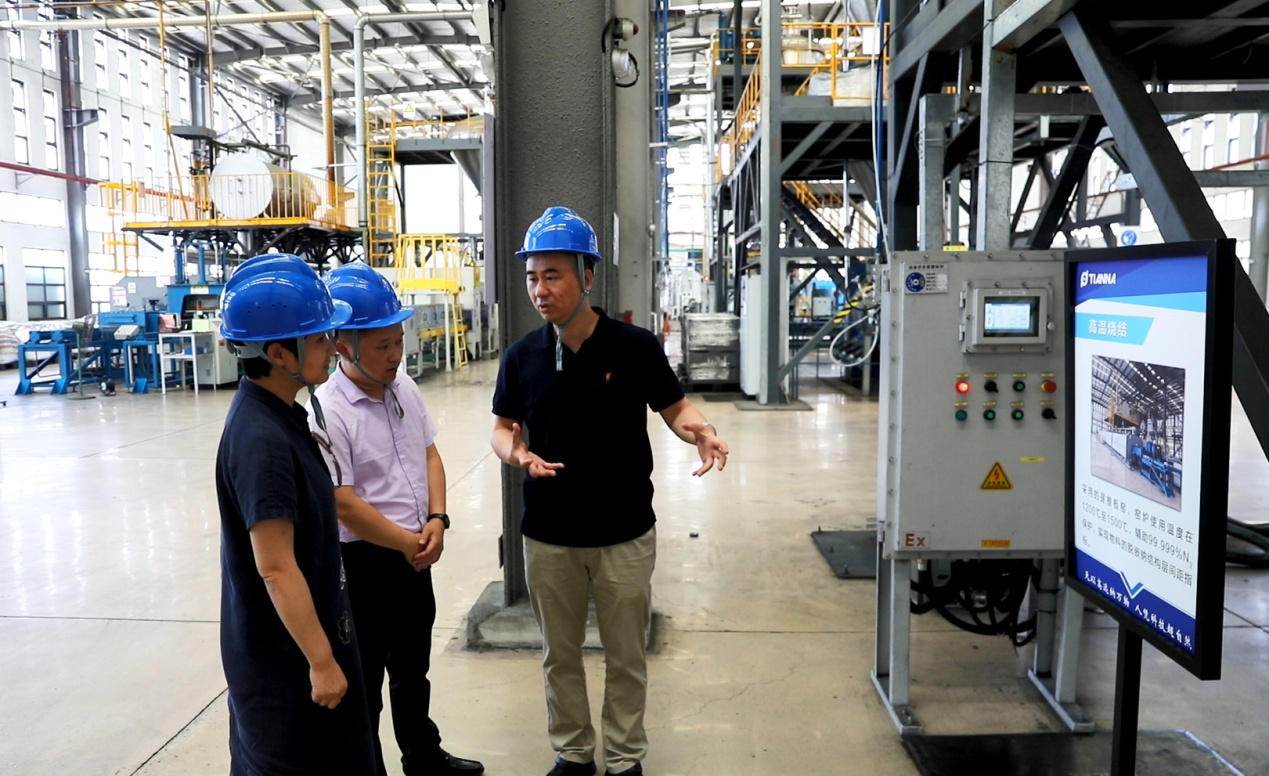 庐江县科创建设投资有限公司深入合肥天纳材料有限公司,与企业负责人交流新产品。