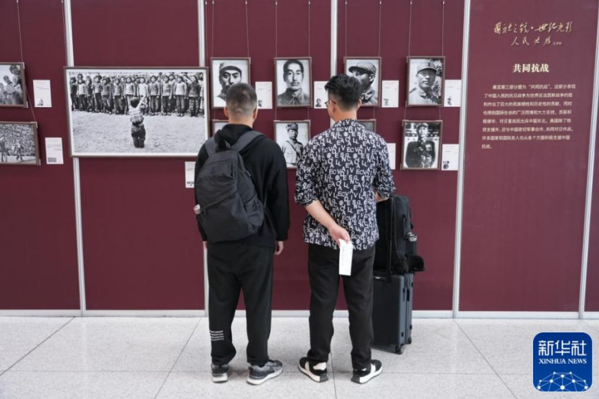 当日,为铭记历史、缅怀英烈、弘扬伟大抗战精神、厚植爱国主义情怀,新华社“国社之镜·世纪光影之人民必胜”艺术展走进合肥新桥国际机场。