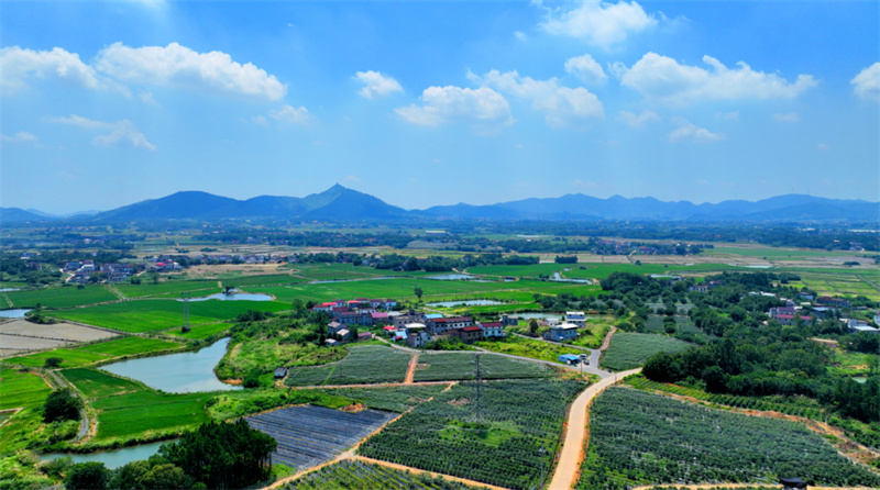 新华网合肥9月26日电(周雨濛)初秋时节,怀宁大地郁郁葱葱,一片生机盎然。驱车行驶在怀宁县公岭镇公路,两侧白墙黛瓦的民居与成片的蓝莓园交错相织、相映成景。