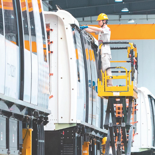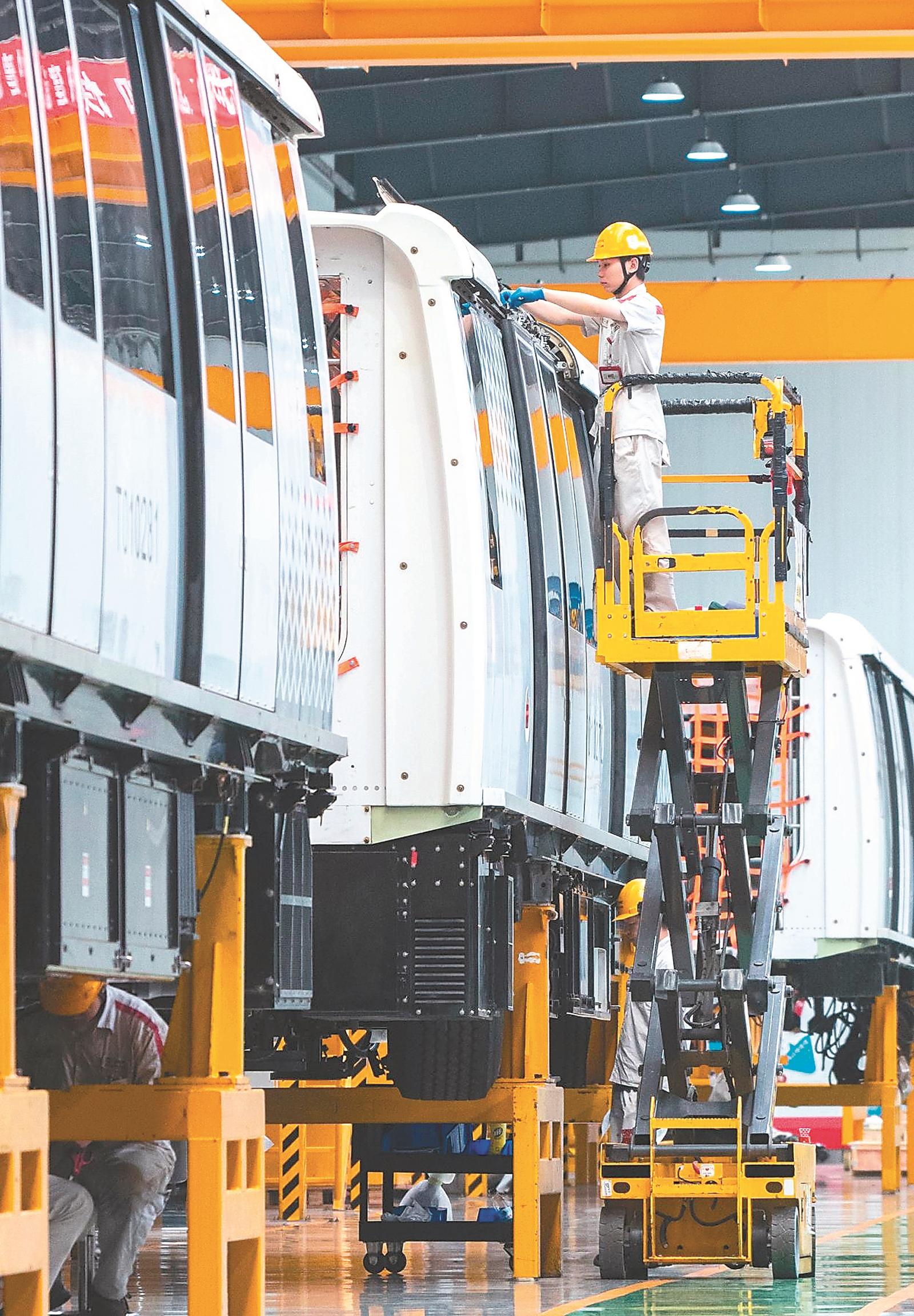 9月26日,在位于芜湖经济技术开发区的中车浦镇阿尔斯通公司生产线,工人在生产制造无人驾驶轨道列车。本报通讯员 肖本祥 摄