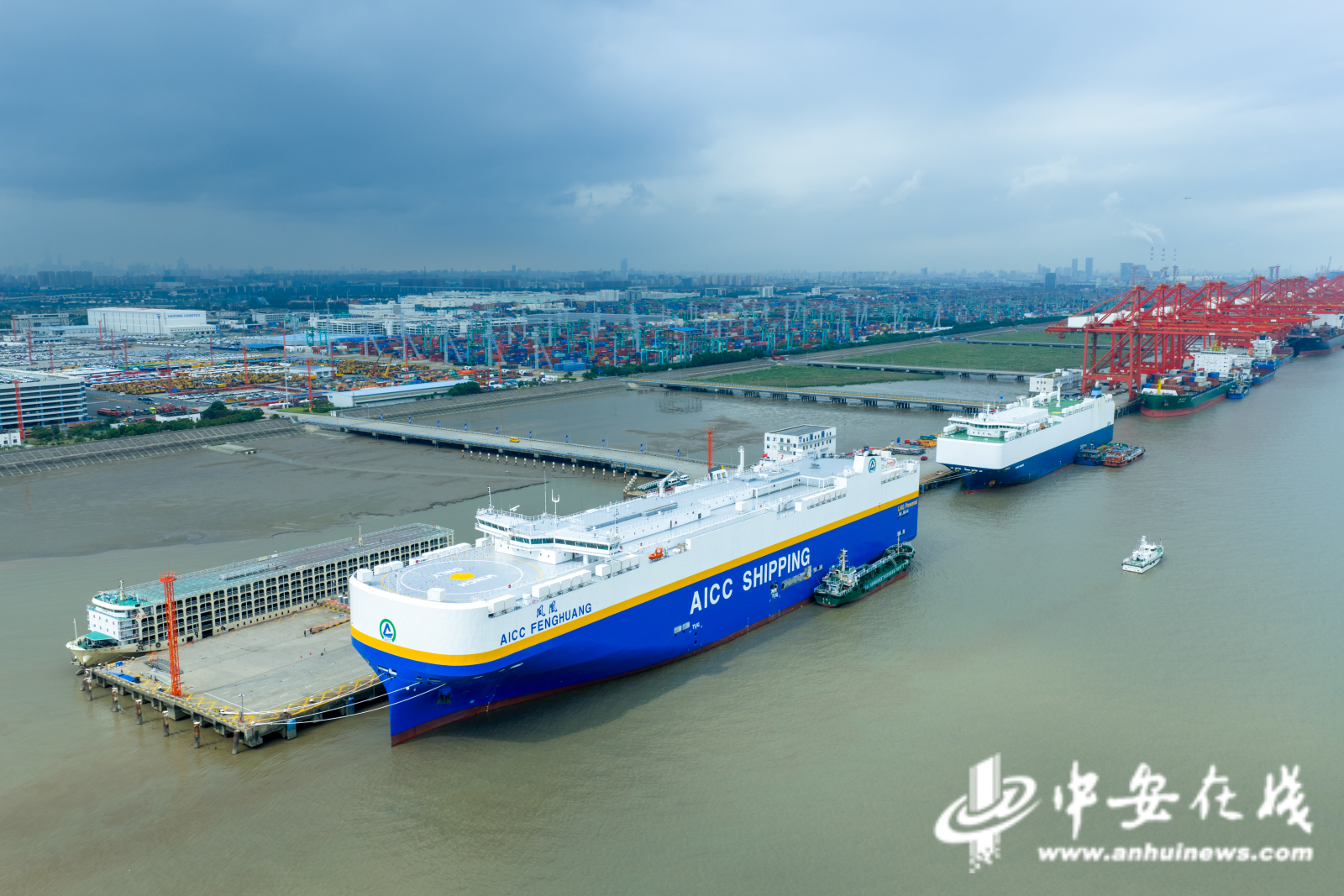 9月29日,安徽省港航集团旗下航瑞国际公司投资建造的首批7000车位LNG双燃料远洋滚装船3号船“凤凰”轮在上海海通国际汽车码头正式命名交付并开启首航,安徽国际远洋滚装运输船队规模进一步扩充。