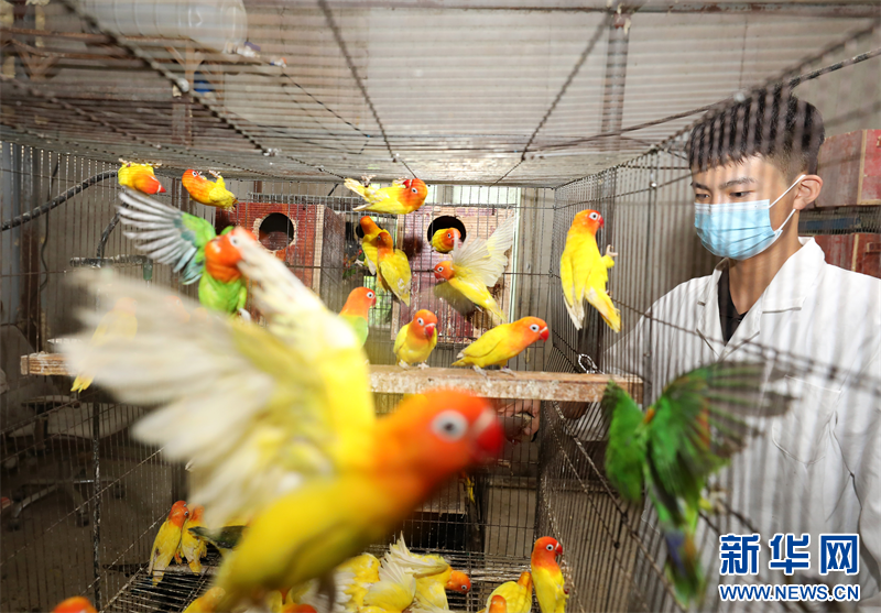 近年来,安徽省淮北市濉溪县四铺镇瞄准宠物经济消费趋势,抢抓新风潮,找准新赛道,引导村民大力发展鹦鹉特色养殖产业,并加快培育特色品牌,提升产业竞争力,逐步由原来的家庭养殖模式向工厂化、规模化、标准化方向转型。目前,该镇养殖的虎皮金彩、绿颊锥尾、费氏牡丹、非洲灰鹦鹉等8个品种3万多只鹦鹉,通过电商平台销往北京、上海等全国各地花鸟市场。推动了当地宠物经济发展实现新突破,成为群众稳定增收的特色产业。新华网发(李鑫 郭子文 摄)