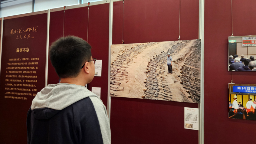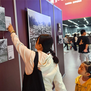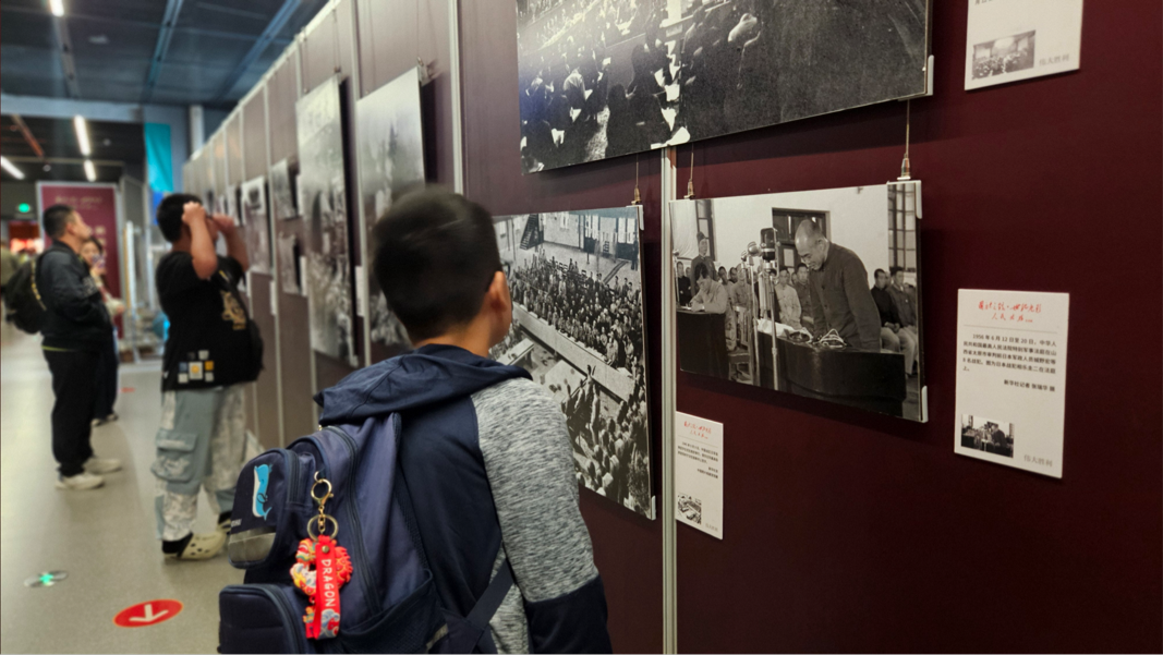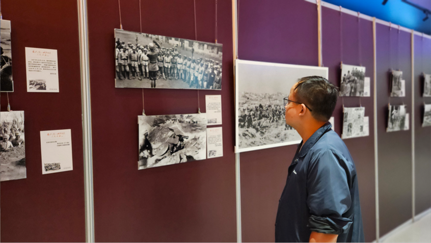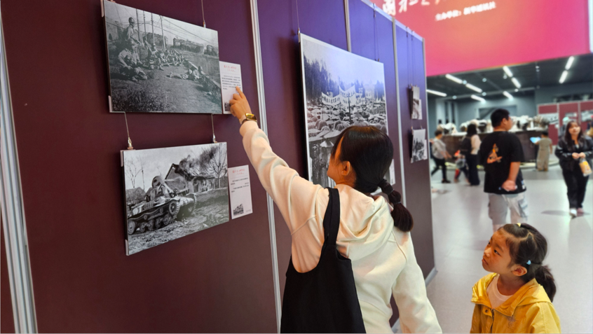国庆中秋假期,正在淮北市工业博物馆展出的“国社之镜·世纪光影之人民必胜”艺术展,吸引了众多市民游客前往参观。现场展出的140余幅图片,铺展出一幅可歌可泣、气壮山河的抗战全景图,全面再现中国作为世界反法西斯战争东方主战场的壮烈史诗。(刘文静 摄)