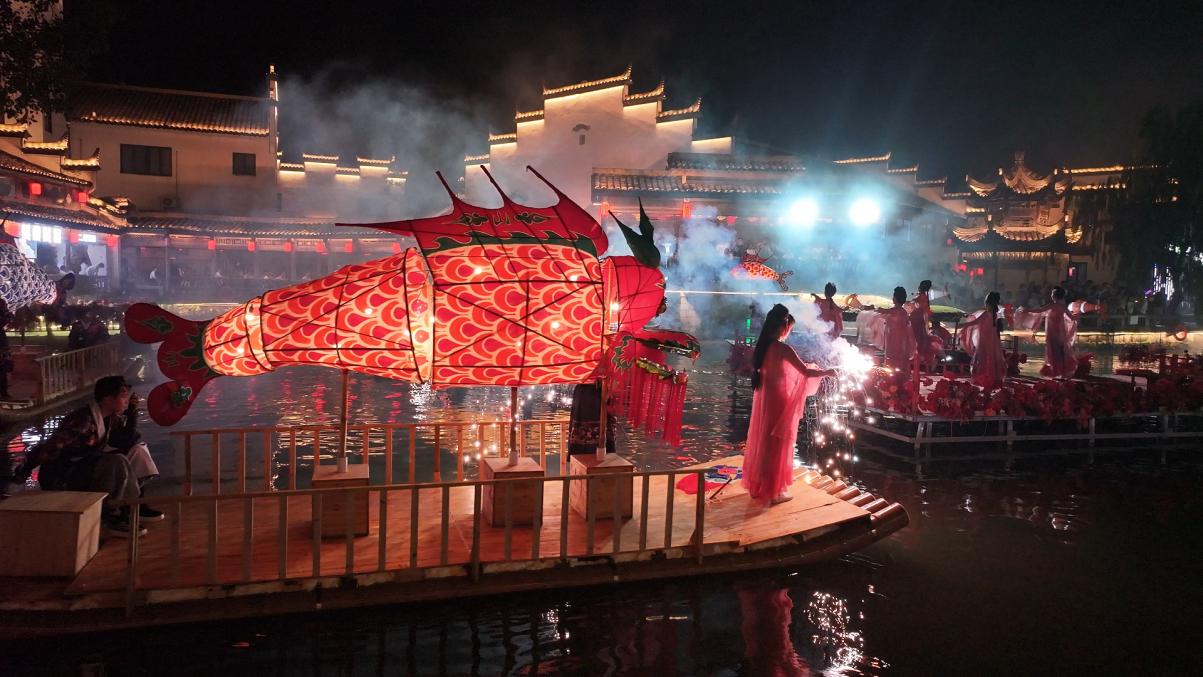 音乐起,歌声扬。经典曲目《天仙配》徐徐唱响,引得周围观众阵阵喝彩。“打破传统舞台的界限,融入‘仙游水镇’等情节,把演出放在古巷、小桥、水面等实景场地,让游客成为剧中人。”演出的策划人茆建琳说道。