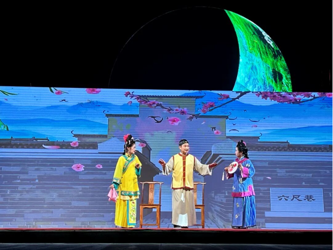 戏曲专场中,黄梅戏《女驸马·洞房》《六尺巷》、京剧《李逵探母》等经典选段轮番上演,传统艺术魅力感染全场。红歌专场上,红军源合唱团的红色民歌、铜管乐队的《军歌联奏》,以及电声乐队演绎的《我和我的祖国》等节目,激荡爱国情怀,将节日氛围推向高潮。