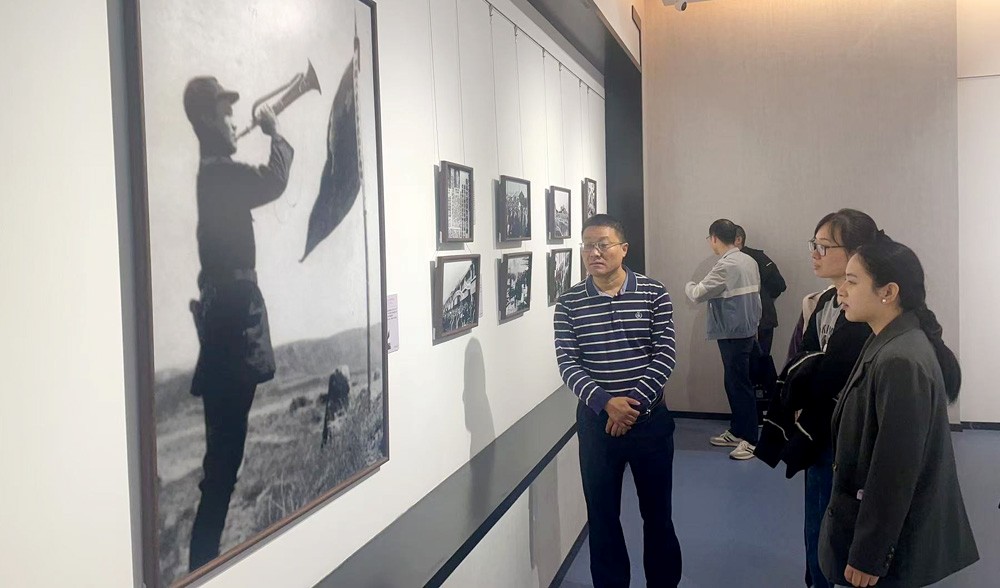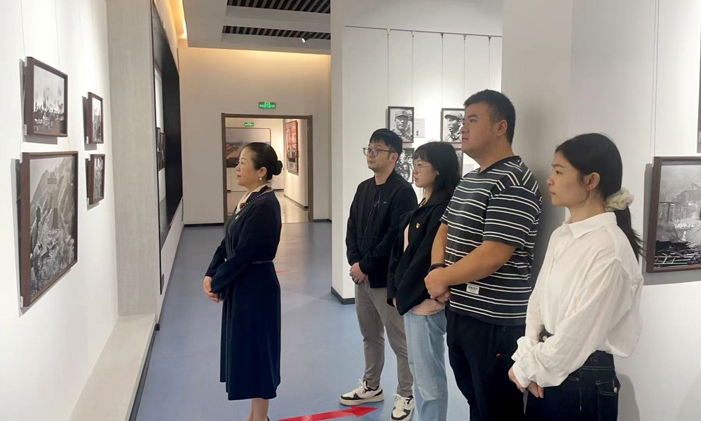 国庆中秋假期,在安徽省六安市新闻传媒中心文化产业实践基地展出的新华社“国社之镜·世纪光影之人民必胜”艺术展,吸引了众多市民游客前往参观。展览以“人民必胜”为主题,精选140余张珍贵历史照片,通过“战争爆发”“浴血奋战”“共同抗战”“伟大胜利”“前事不忘”五个部分,铺展出一幅可歌可泣、气壮山河的抗战全景图,全面再现中国作为世界反法西斯战争东方主战场的壮烈史诗,深刻诠释“伟大抗战精神是中国人民弥足珍贵的精神财富”的深邃论断。(夏俊 摄)
