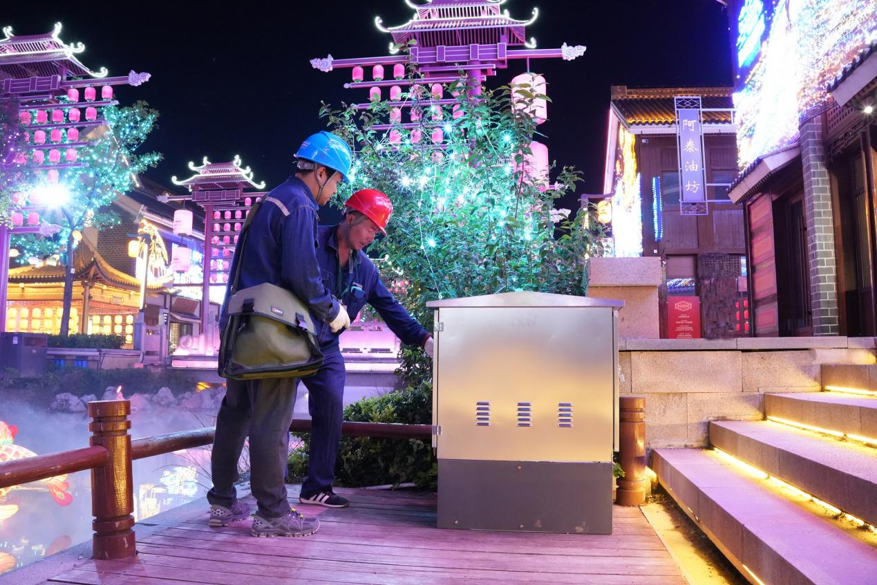 热闹的文旅活动,让景区用电负荷较平日翻了3倍。为确保电力供应“零差错”,濉溪县供电公司早在节前半个月就启动了保电筹备工作,组建专项保电小组,多次到石板街现场勘察,逐一统计灯展、演艺设备的功率参数,精准测算用电负荷,定制出一套特殊保电方案。
