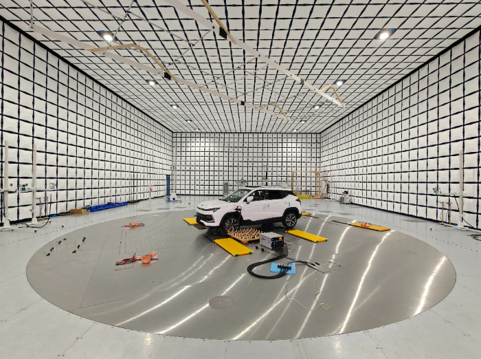 10月13日,招商车研电磁兼容试验室里正对车辆进行测试。