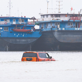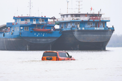 正在横渡长江的捷途纵横G700汽车。供图/奇瑞公司