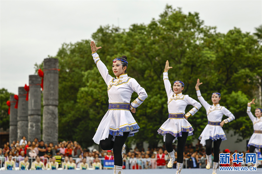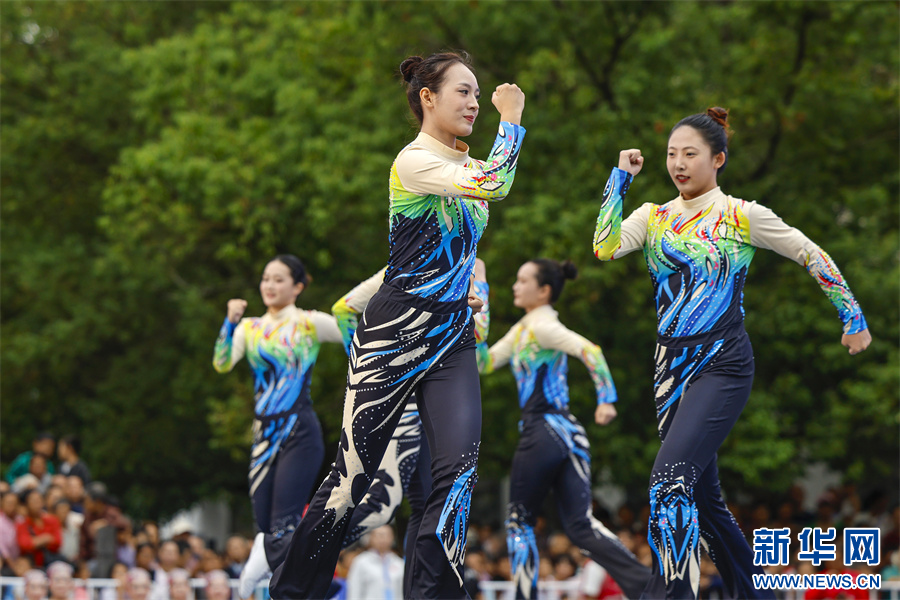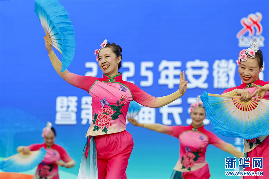 当日,2025年安徽省广场舞群众业余联赛总决赛在休宁县举行。400余名广场舞爱好者以舞会友,共同展现新时代人民群众充满活力与自信的幸福风采。新华网发(施亚磊 摄)