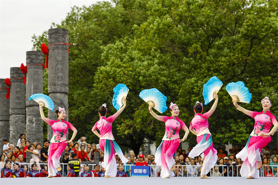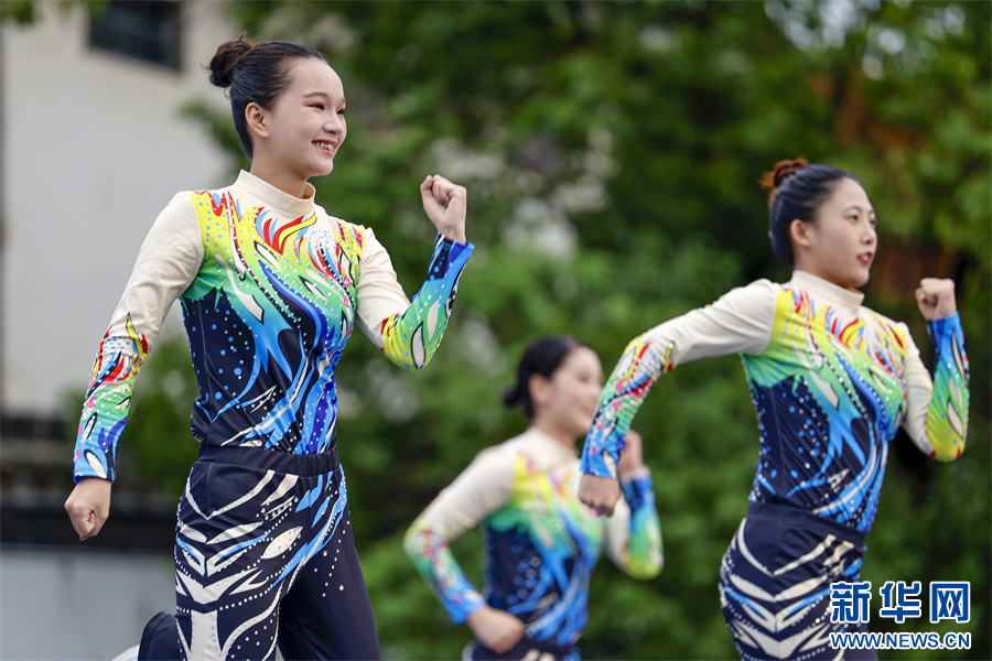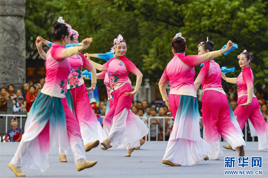 10月18日,在安徽省黄山市休宁县状元广场,参赛选手正在表演节目。