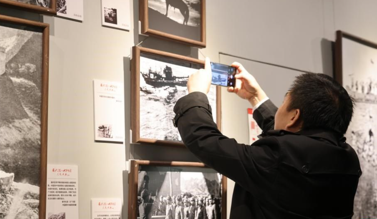 展出的照片中,记录着东北军民冰天雪地中向死而生的决绝冲锋,记录着平型关大捷中八路军与敌肉搏的英勇瞬间,记录着滇缅公路万千民众以双手凿出抗战“生命线”的坚韧身影,记录着侵略者签下投降书、全民族迎来抗战胜利的伟大荣光,记录着新时代人民军队在阅兵中走过天安门广场的步履铿锵……