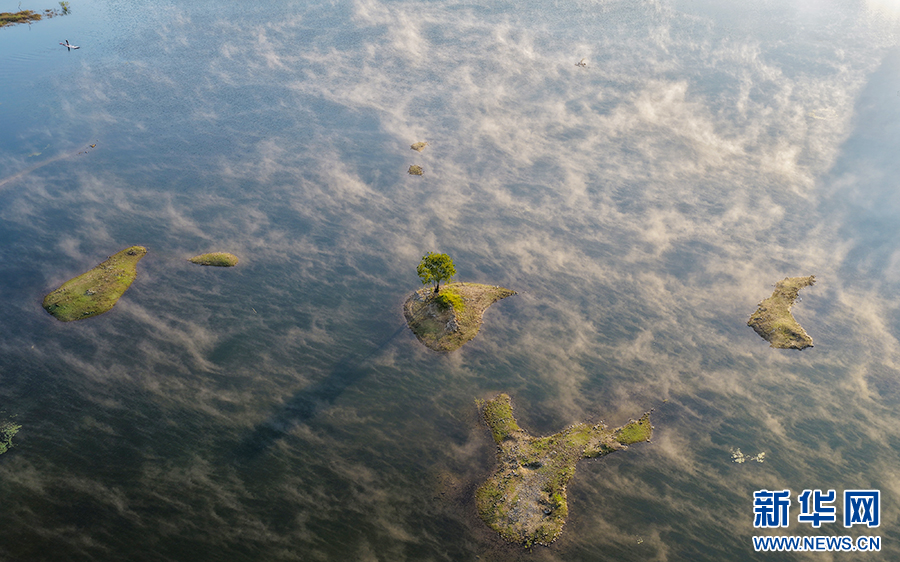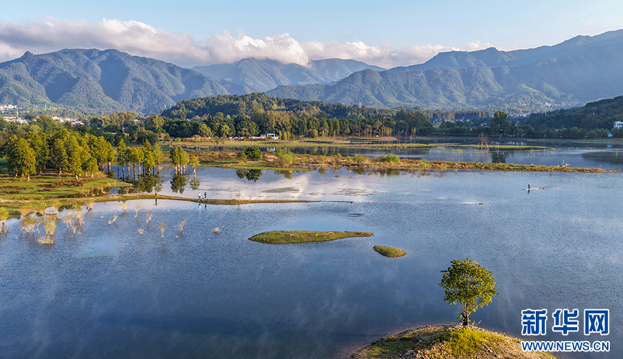 10月23日,在安徽省黄山市黟县宏村镇拍摄的奇墅湖晨景(无人机照片)。