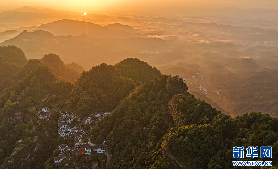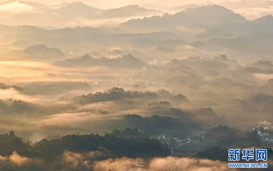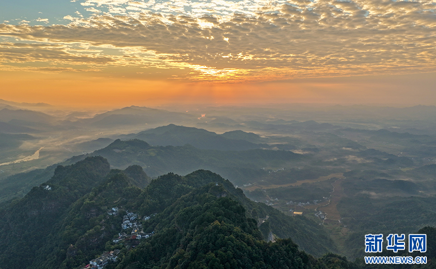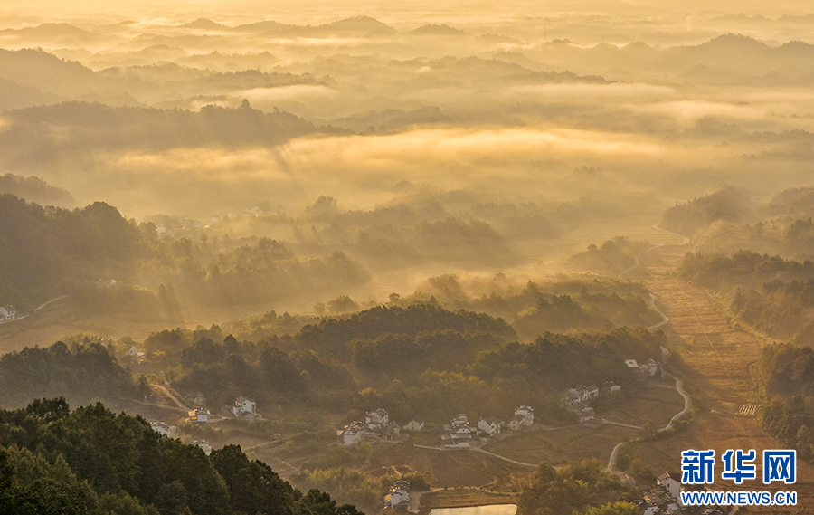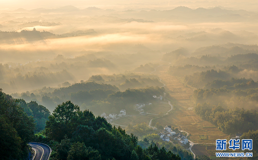 秋日清晨,安徽省黄山市休宁县齐云山云雾缭绕,山峦与田园在飘渺的云纱中若隐若现,宛若一幅浑然天成的水墨画卷。新华网发(施亚磊 摄)