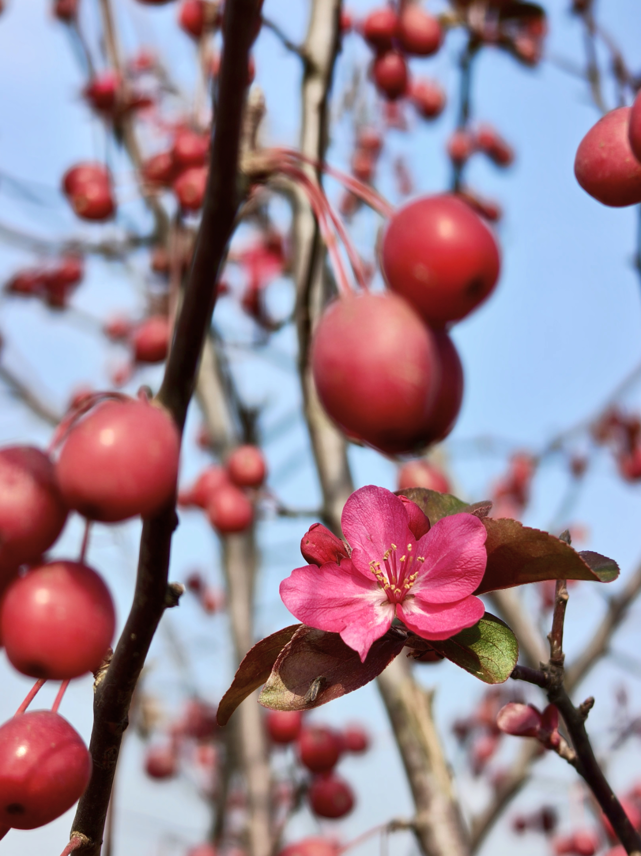 目前,城池村的海棠“花果同框”景观正值最佳观赏期,预计可持续至11月初。若想邂逅这份秋日限定浪漫,不妨趁着晴好天气,前往感受自然与季节碰撞出的奇妙火花。(行治和)