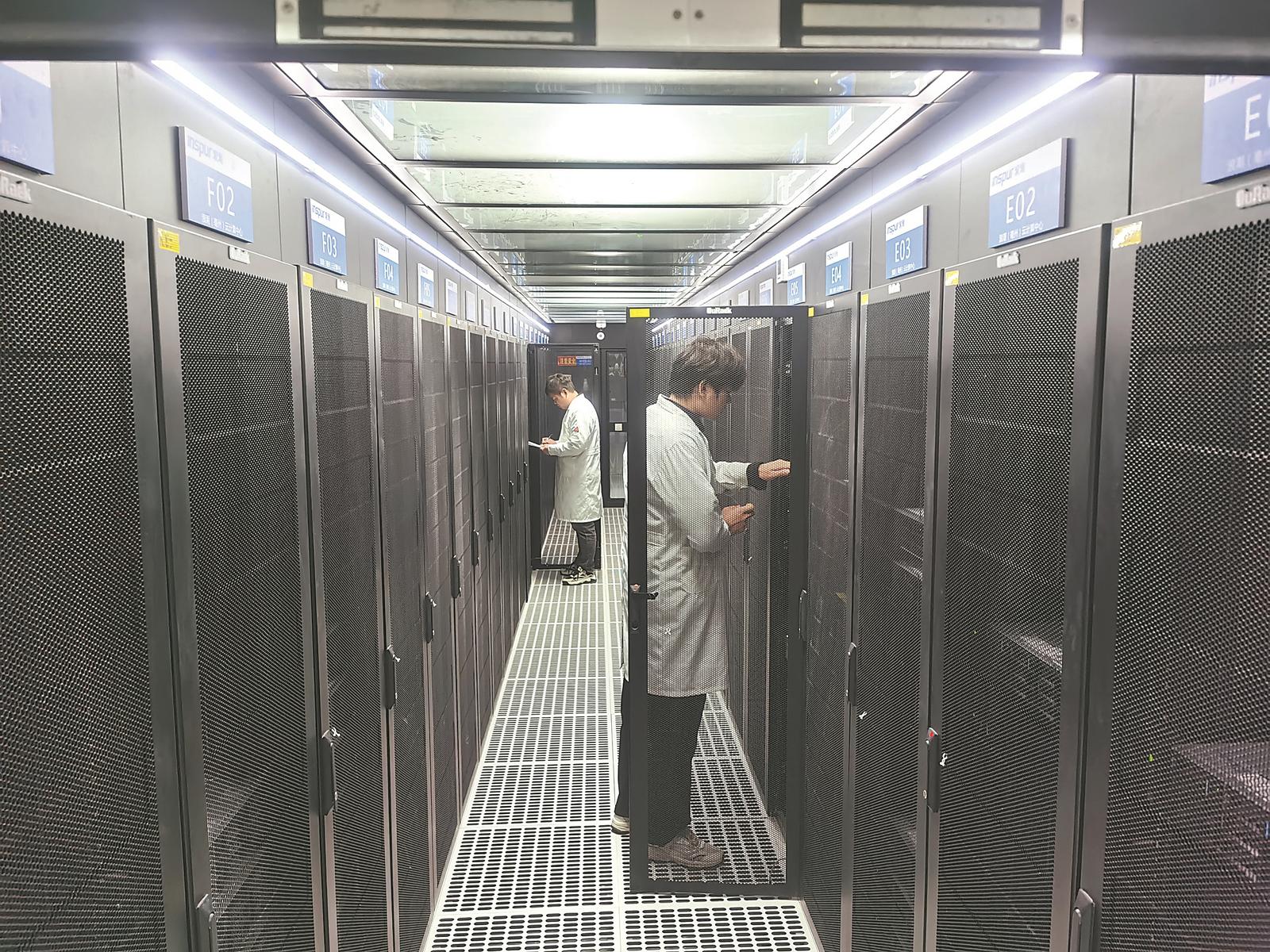 亳州市云计算中心机房,工作人员在检查设备运行情况。