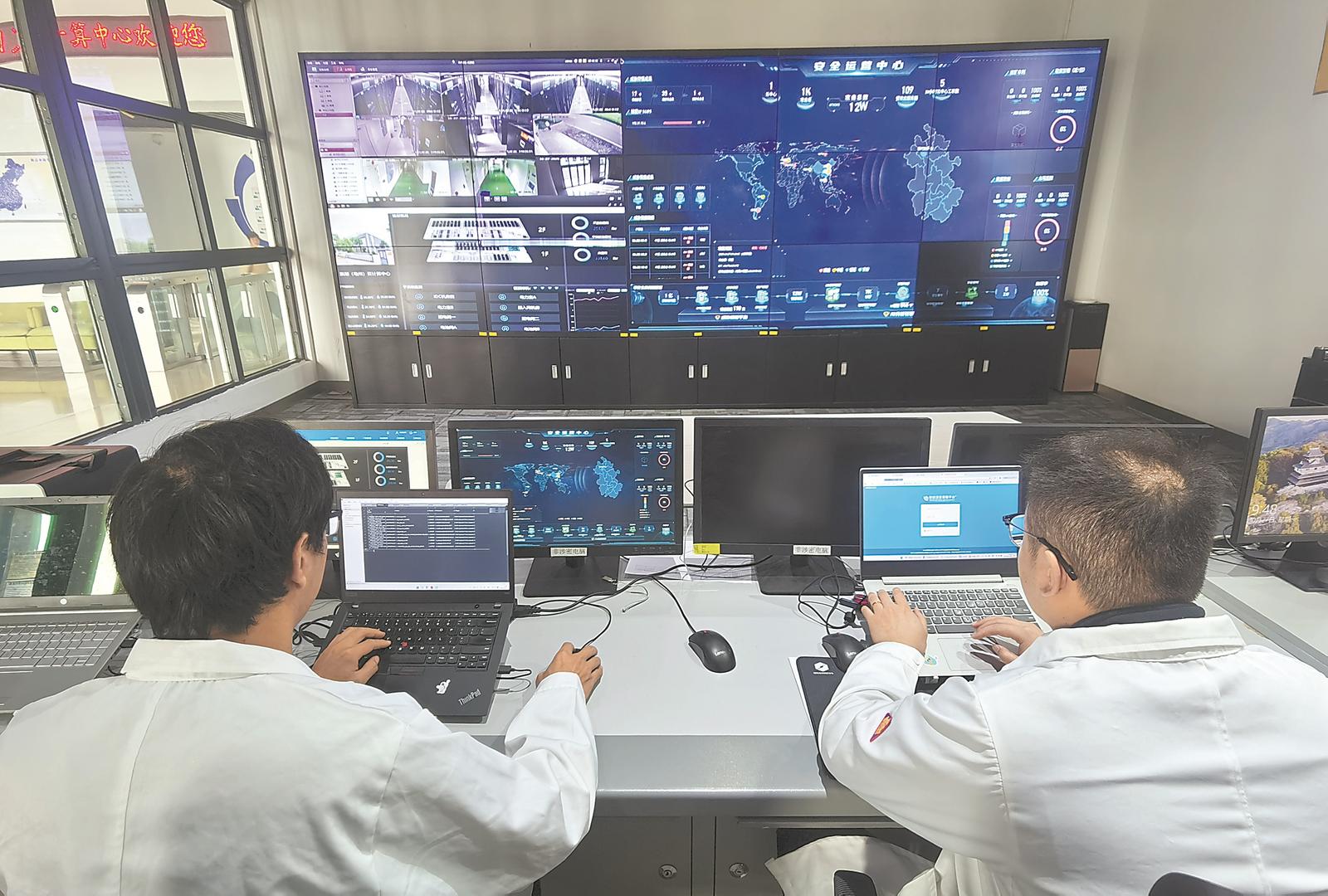 亳州市云计算中心监控室,工作人员在监测数据运行情况。