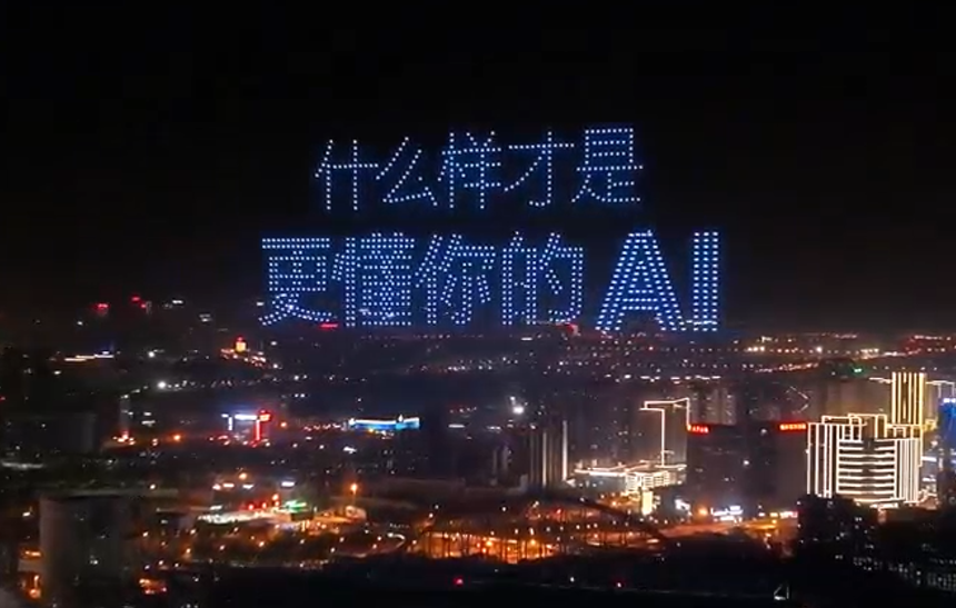 11月1日晚 ,1024架无人机以夜空为幕、科技为笔,上演以“我在合肥说AI你”为主题的无人机灯光秀。用科技的浪漫致敬每一位开发者,点亮属于编程世界的璀璨星河。