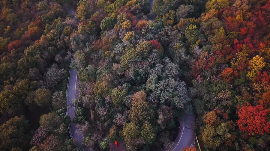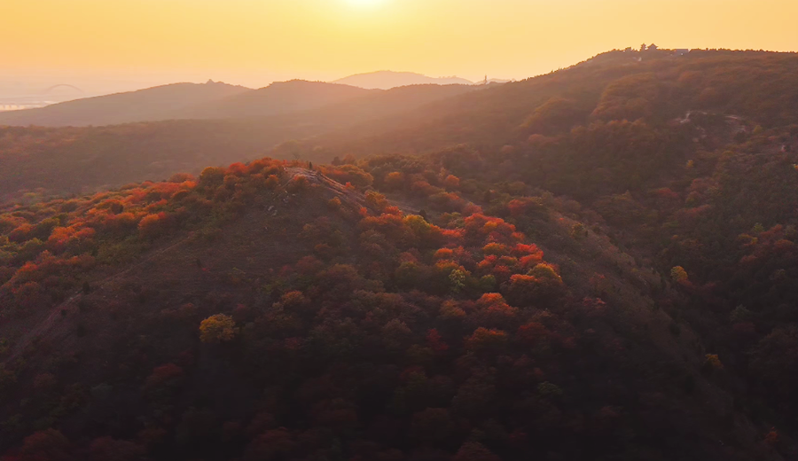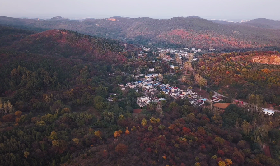 深秋时节,在安徽省淮南市八公山区,红叶与银杏交织成斑斓的秋色,宛若打翻的调色盘,美不胜收。(胡捷、朱晨晨)