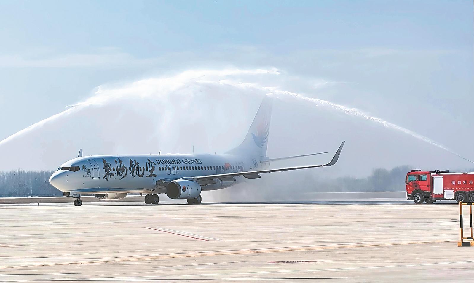 11月12日,亳州机场用水门仪式欢迎首航航班。