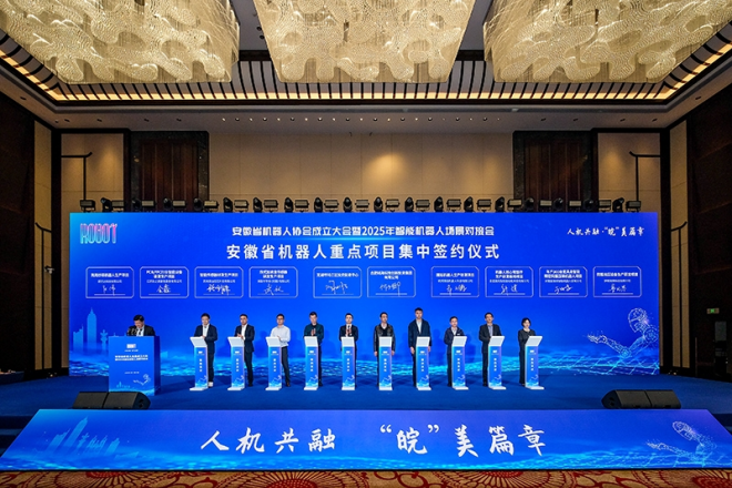 11月14日,安徽省机器人协会成立大会暨2025年智能机器人场景对接会在芜湖市举办。中国机械工业联合会秘书长宋晓刚、安徽省工业和信息化厅厅长冯克金共同为“安徽省机器人协会”揭牌。协会将以“服务国家创新驱动发展战略、服务安徽省机器人产业高质量发展战略”为宗旨,构建全省智能机器人产业协同创新平台,完善“政产学研金服用”融合互动机制,坚持市场驱动,聚焦产业协同、技术创新、场景应用。
