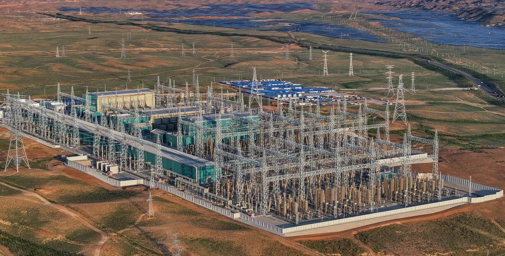 这是8月19日拍摄的“宁电入湘”工程宁夏中卫市中宁换流站(无人机照片)。新华社记者冯开华 摄