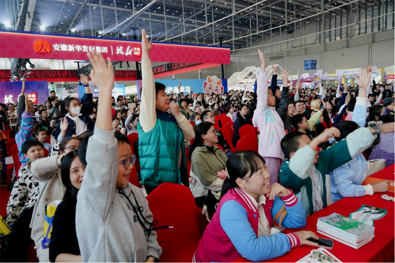 2025中国黄山书会主会场气氛浓厚,小读者们踊跃与作家互动。新华网发(主办方供图)