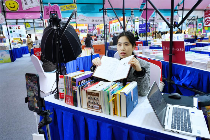 2025中国黄山书会上,工作人员正在直播销售图书。新华网发(主办方供图)