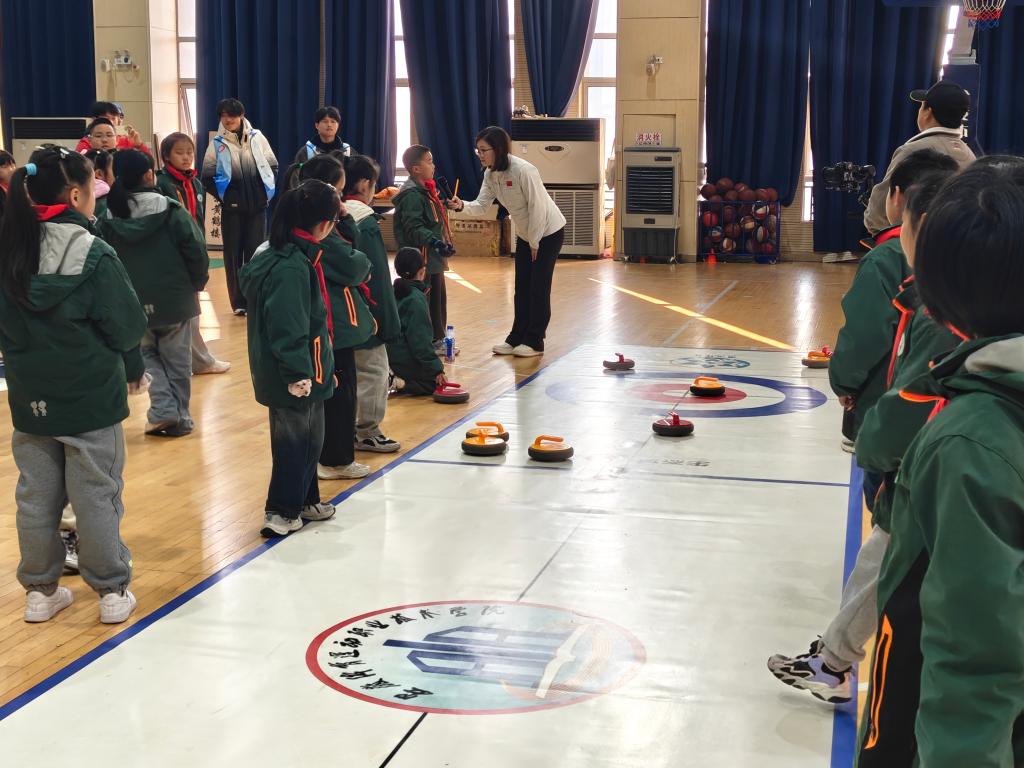 合肥市贵阳路小学,王冰玉向学生们讲解冰壶规则和技术动作