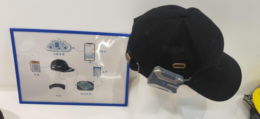 安徽北方微电子研究院研制的脑机接口健康帽。新华社记者 王菲 摄