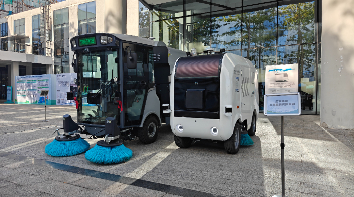在场景创新赛环节,该企业推出“人行道冲洗+非机动车道清扫”无人化联合作业方案,通过双机协同作业,有效解决了宽幅人行道清扫覆盖不足、共享单车和行道树等障碍物影响作业等行业难题,展示了创新作业模式的应用潜力。
