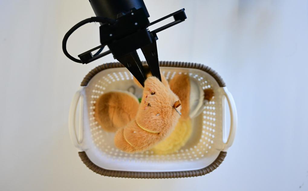11月25日,在合肥零次方机器人有限公司,机器人训练夹取物品,用于数据采集。新华社记者 周牧 摄