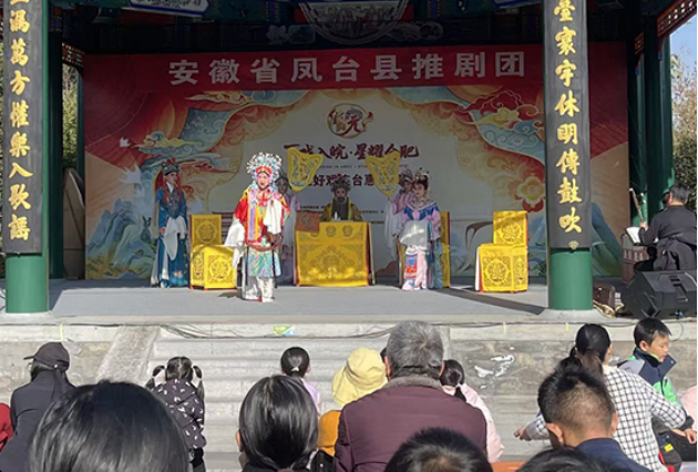 11月29日至30日,凤台县推剧团应邀参加由中国文联与安徽省委宣传部指导,中国戏曲家协会、中国戏曲学院、中央广播电视总台文艺节目中心、合肥市委市政府联合主办的“百戏入皖•星耀合肥”江淮好戏连台惠民演出活动,在合肥骆岗公园(北京园)连续两天奉献四场大型传统推剧。