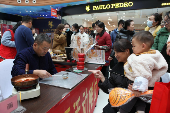最热闹的要数主题活动摊位。做香包的吴老师手里捏着彩线,正向几位阿姨展示香包制作过程,“把艾草装进去,再用线这么绕三圈,缝得密实点,挂在包上、钥匙上,好看又能驱蚊。”不一会儿,一个个绣着花纹的香包就做好了,整齐摆在一起,格外养眼;糖画摊位前更是“圈粉无数”,糖浆熬得金黄,一会儿功夫,师傅就做出了小兔子、小老虎的形状,孩子们举着糖画,蹦蹦跳跳地跟在家长身后,甜滋滋的糖香飘了一路。