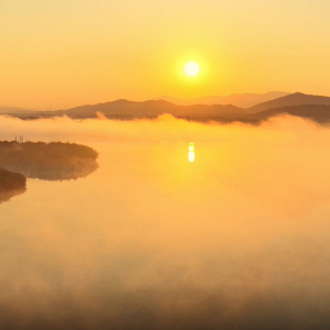 近日,安徽池州平天湖风景区薄雾弥漫,金色的晨曦晕染湖面,宛若一幅诗意流淌的水墨长卷,美不胜收。(陈移风)