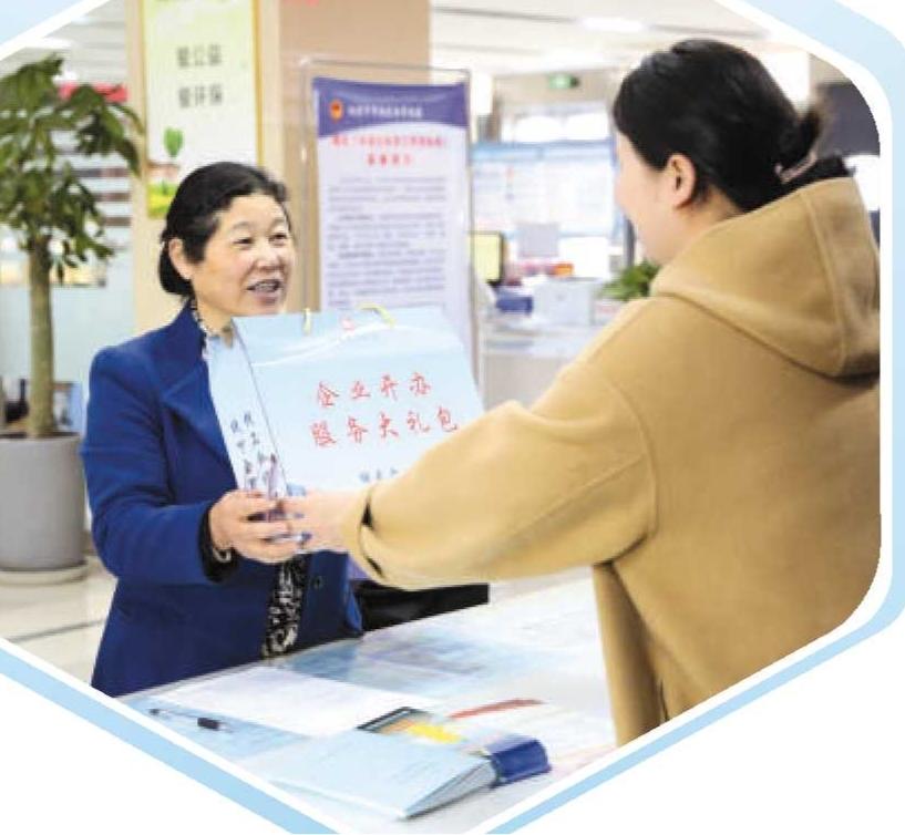 郊区工作人员为企业送上开办“大礼包”。 周传国 摄