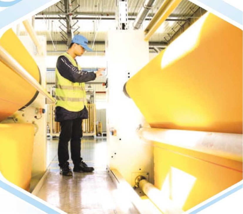 位于郊区经开区的铜陵海螺环境科技公司生产车间内,工人正专注操作拉幅定型机。陈磊 摄
