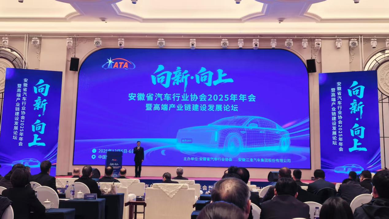 12月6日,以“向新·向上”为主题的安徽省汽车行业协会2025年年会暨高端产业链建设发展论坛在合肥举行。会议由安徽省汽车行业协会、安徽江淮汽车集团股份有限公司主办,行业主管部门代表、相关企业代表、专家学者等350余人齐聚一堂,共话产业发展新机遇、新路径。