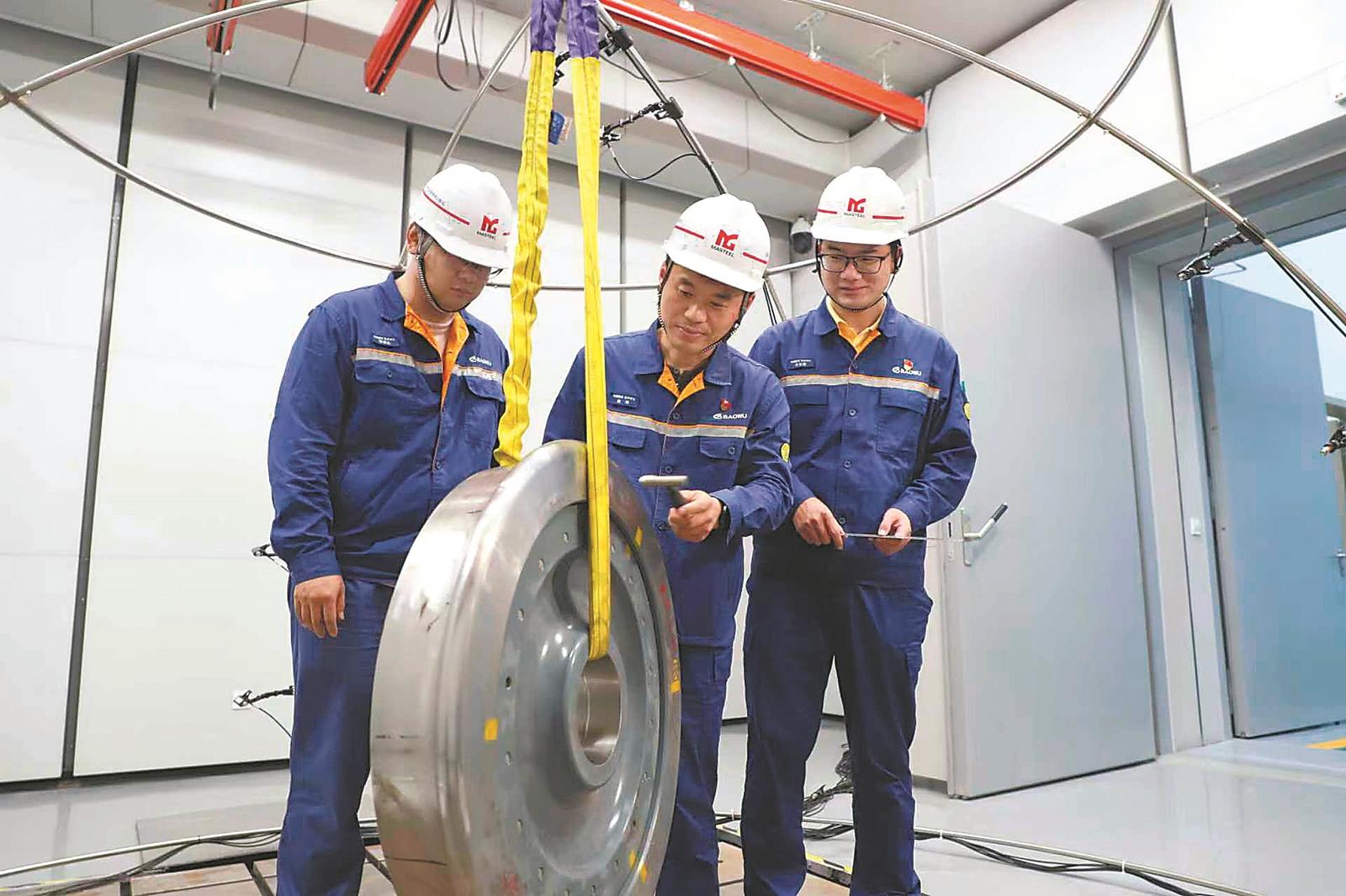 马钢技术人员对高铁车轮进行测试分析。 (资料图片)