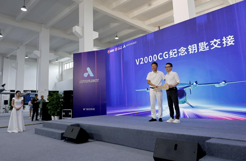 这是V2000CG凯瑞鸥电动垂直起降航空器交付仪式现场(2025年7月22日摄)。新华社记者 方喆 摄