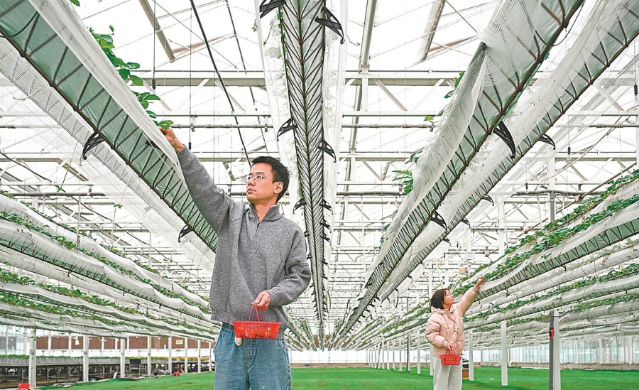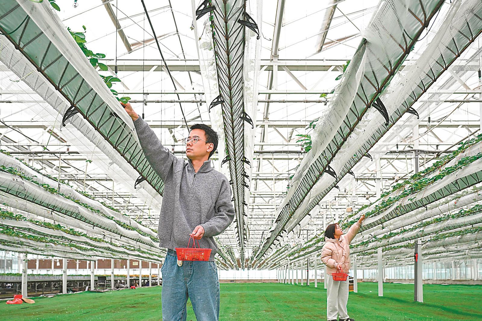 12月12日,在长丰县智慧农业谷数字草莓示范园,技术人员在培育草莓。近年来,长丰县不断提升农业农村数字化管理与服务水平,打造了一批集智能化种植和观光休闲于一体的生态农业综合体,推动智慧农业和乡村旅游融合发展,助力农业增效、农民增收。