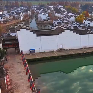 近日,在铜陵市义安区犁桥水镇景区,白墙黛瓦的徽派建筑错落有致,倒映在水中,宛如一幅水墨画卷,呈现出一派美丽景象。(章龙)