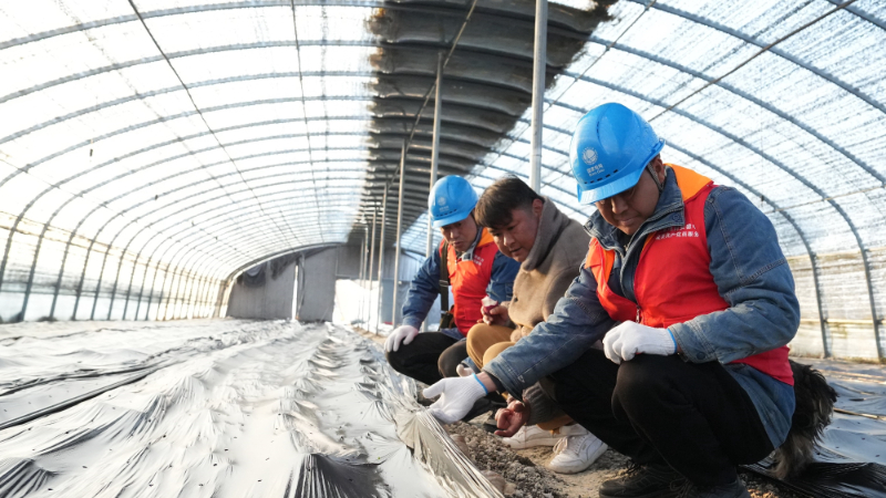 12月25日,濉溪县供电公司工作人员在检查种植基地用电设备。(储运涛 摄)